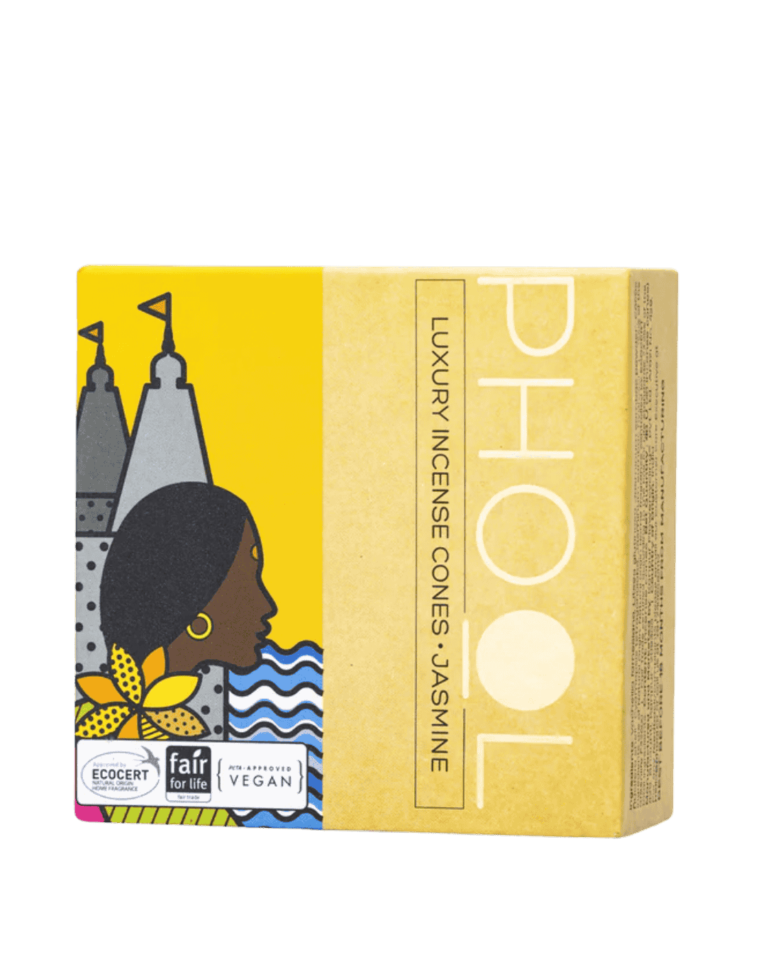 Made from sacred temple flowers, 100% natural essential oils. Phool natural incense cones are hand-rolled by our women flowercyclers.