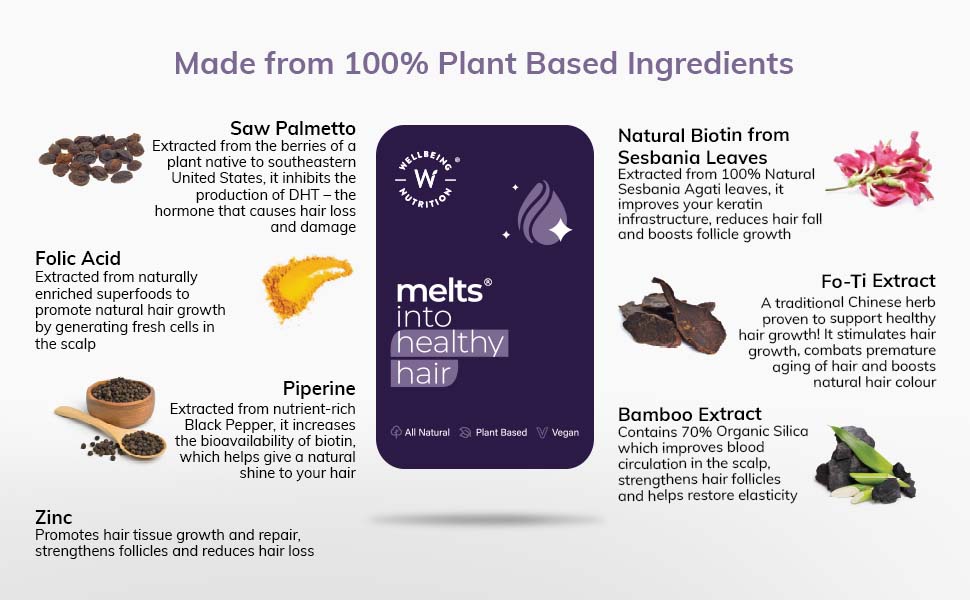 Advanced German NANO Science (Melts) – Fast Acting and All Natural Plant-Based Biotin is 95% more bioavailable than traditional tablets/capsules/ gummies. Patented Nanotechnology converts plant extracts into nanoparticles and the Sublingual quick dissolve delivery system ensures the actives are directly released into the bloodstream for complete absorption.