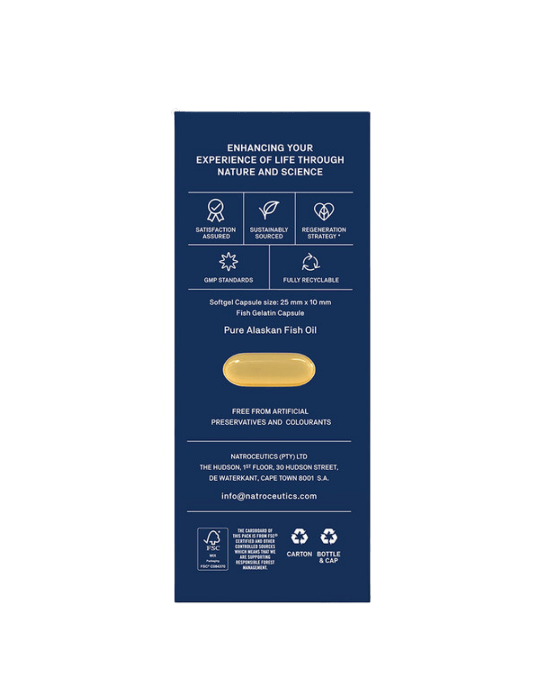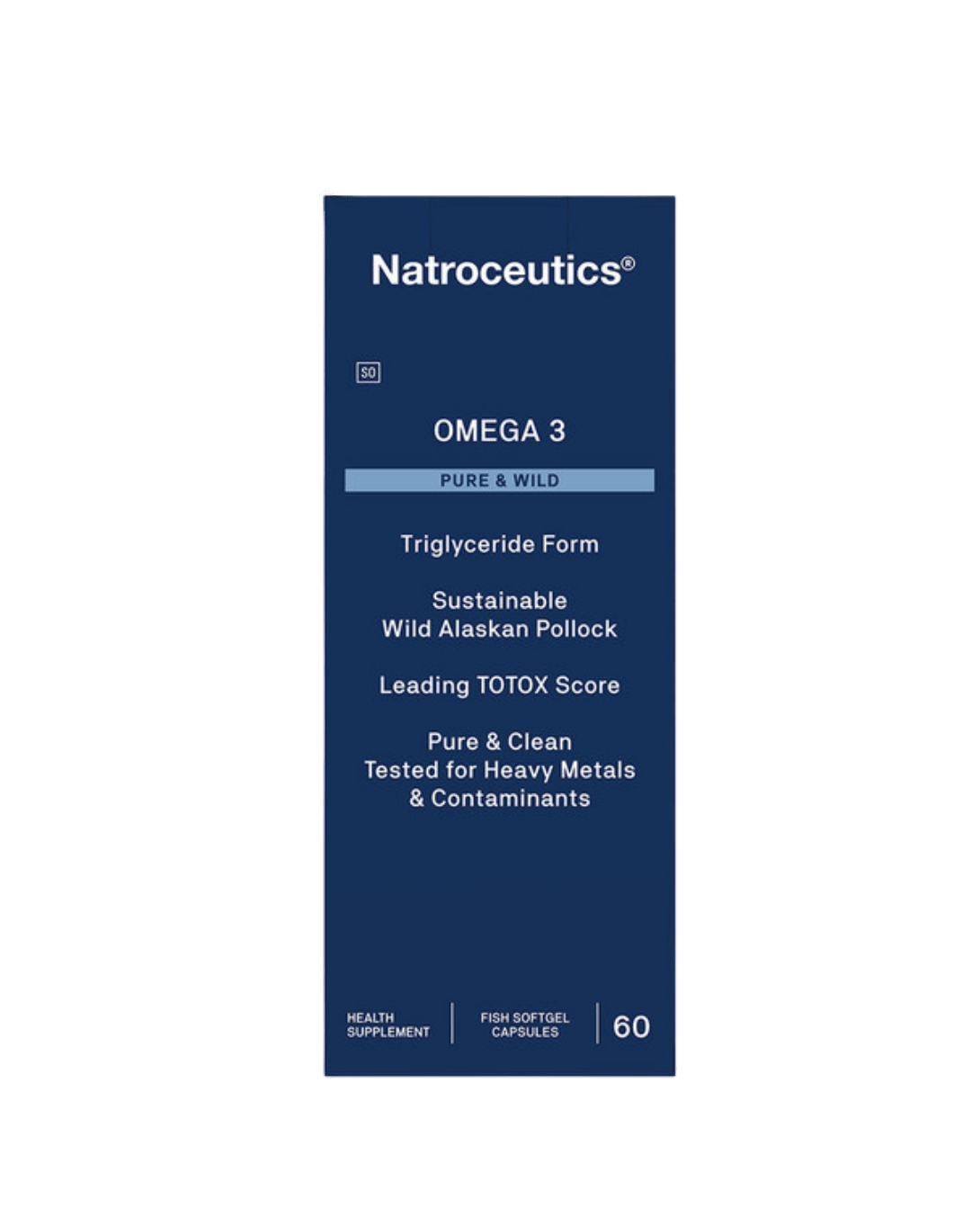 Natroceutics Omega 3 Pure & Wild is crafted from sustainably wild-caught Alaskan pollock and delivered in its natural triglyceride form for superior absorption and purity. Each batch undergoes rigorous testing for oxidation (TOTOX score) and is free from heavy metals and ocean-based contaminants.